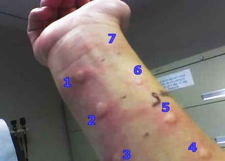 - After about 15 minutes, if a lump surrounded by a reddish area appears (like a mosquito bite) at the injection site, the test is positive.