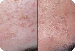 At the heart of acne lies the pimple -- a plug of fat, skin, and keratin. When open, the plug is called a blackhead, closed, a whitehead. Often seen on the face, chest, and back, acne is caused by many things, including hormones. To help control it, keep oily areas clean and don't squeeze pimples (it may cause infection and scars).