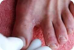 A fungal infection that can cause peeling, redness, itching, burning, and sometimes blisters and sores, athlete's foot is mildly contagious, passed by direct contact or by walking barefoot in areas such as locker rooms, or near pools. The fungi then grow in shoes, especially tight ones without air circulation.