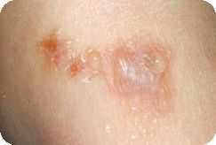 Contact with sap from poison ivy, oak, and sumac causes a rash in most people. It begins with redness and swelling at the contact site, then becomes intensely itchy. Blistering appears within hours or a few days. The typical rash is arranged as a red line on an exposed area, caused by the plant dragging across the skin. The rash usually lasts up to two weeks.