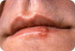 Small, painful, fluid-filled blisters on the mouth or nose, cold sores are caused by the herpes simplex virus. Lasting about seven to 10 days, cold sores are contagious until completely crusted over. Triggers can include fever, too much sun, stress, or menstruation. Antiviral pills or creams can be used as treatment, but call your doctor if sores contain pus, you have a fever greater than 100.5°, or if your eyes become irritated.